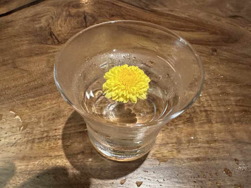 重陽の節句。第2回は「虎ノ門 楽㐂」という虎ノ門ヒルズにある店です。重陽の節句の宴ですから、“登高”しなければならないので、ヒルズ限定で、昨年とは別のところを探して見つけた店です。しかも、菊酒をいただかなければならないので、日本酒のある店で。今年も、事前に連絡して、刺身用の小菊を人数分以上用意していただき、無事に菊酒を堪能できました。今回も快く、こちらの要望に応えていただいたこの店に感謝します。居酒屋らしく、大きく店の前をあけたテーブル席とカウンターのバランスのとれた店舗でした。我々は、6名と大所帯なので、真ん中の一枚板の大テーブルに案内されました。他のお客さんは、比較的若い人が多く、少人数で、仕事帰りの飲み会という感じが多かったです。店の雰囲気もよく、料理も旨いので、今宵も、皆さんと話が盛り上がって、楽しく過ごすことができました。いただいたのは、秋の絢爛コース飲み放題付き¥10,000です。その料理は、オーソドックスな和食ではあるのですが、提供される順番が面白かった感じです。スタートが、鮨2貫、お造りの後にお肉。そして次に、前菜のはずの八寸が。さすがに、〆は炊き込み御飯でしたが、最近はこういうスタイルのお店がいくつかあるようです。お腹がすいているうちに、美味しいものをということなのでしょうか。重陽の節句は、家族や知人の健康と安全を祈念するため、登高して思いを遠くへ届け、薬になる菊を酒に浮かべて酌み交わす宴です。今年も、大勢で祝うことができて、とても幸せでした。参加していただいた方に感謝です。ありがとうございました。本邦では廃れてしまった節句を、これからも毎年続けていきたいと思いますので、庚申待ち同様、奮ってご参加いただければ幸いです。