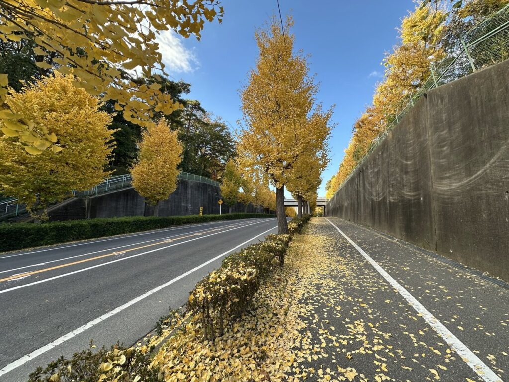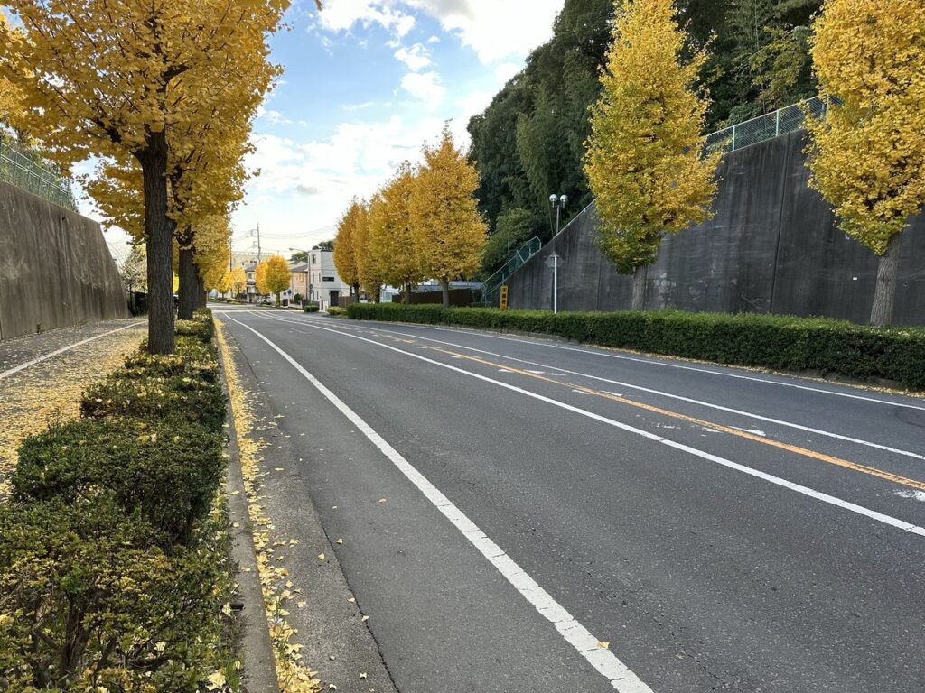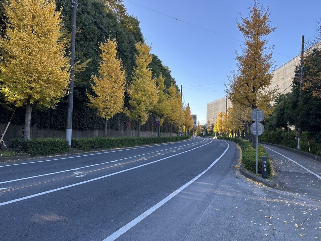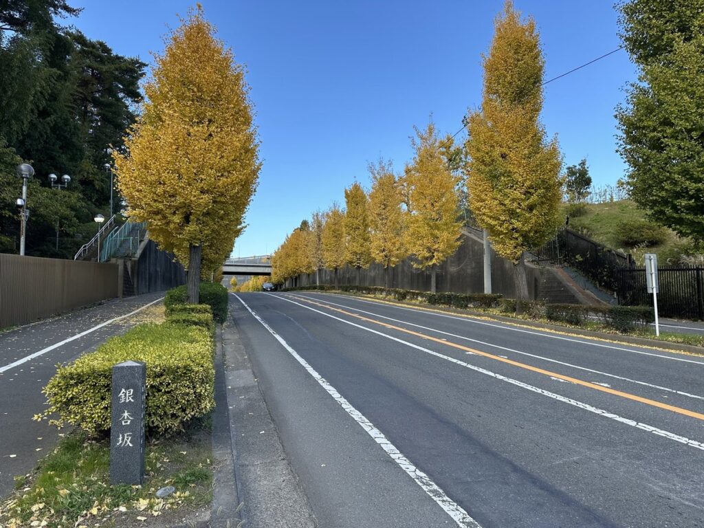 2025.11.22 長い坂道の道路の両側に続く銀杏並木が美しい。平成二十六年 取手の坂道愛好会 取手ライオンズクラブ