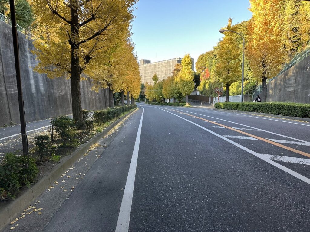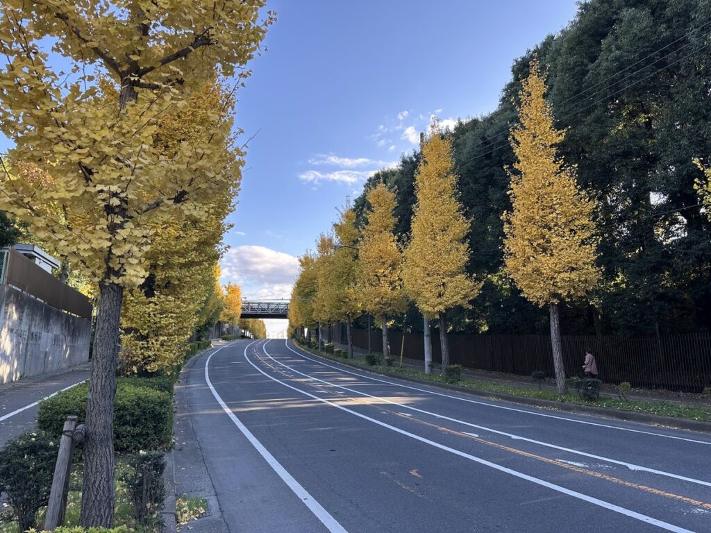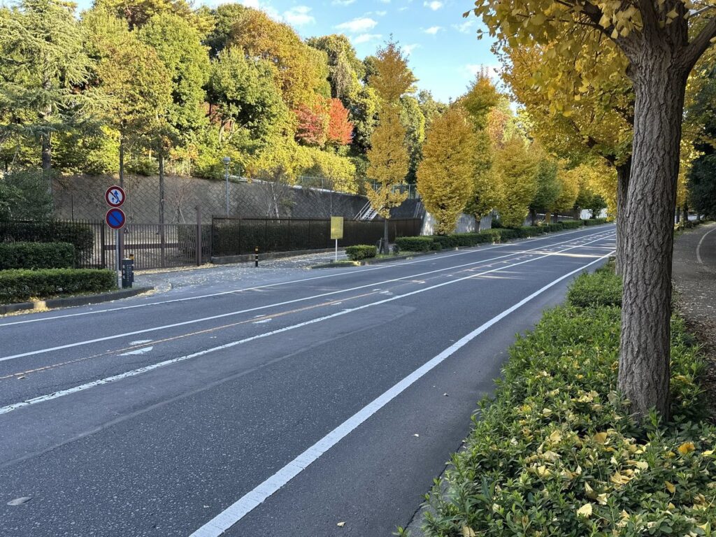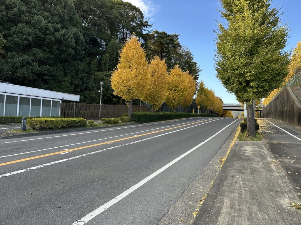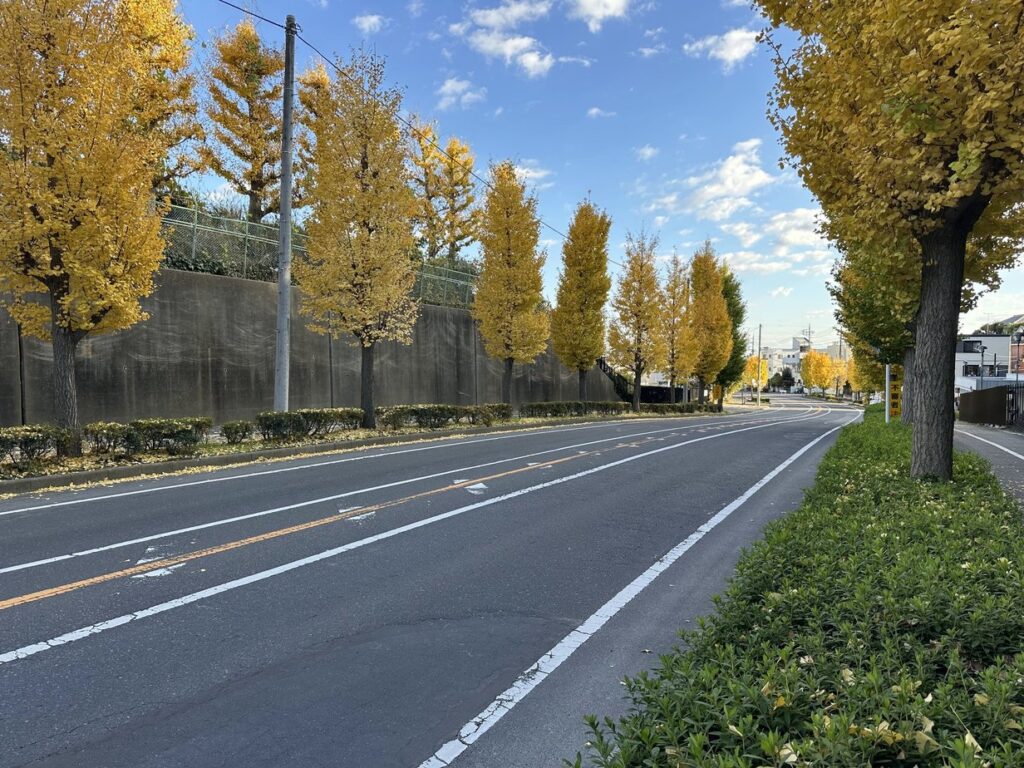 2025.11.22 長い坂道の道路の両側に続く銀杏並木が美しい。平成二十六年 取手の坂道愛好会 取手ライオンズクラブ