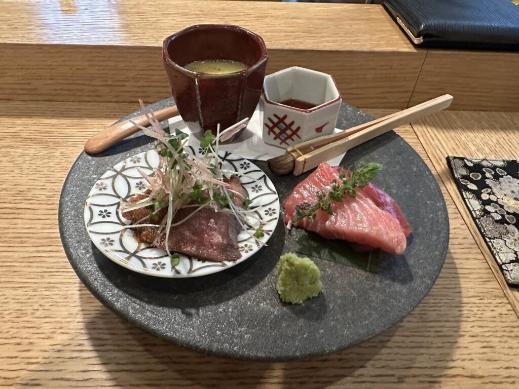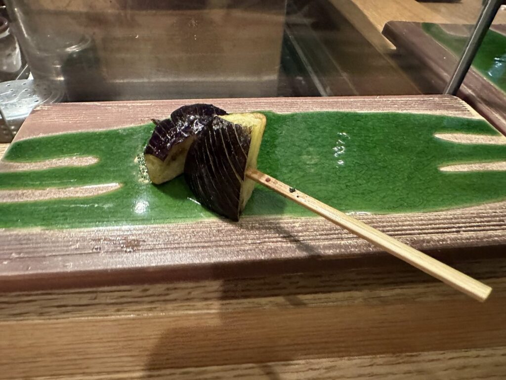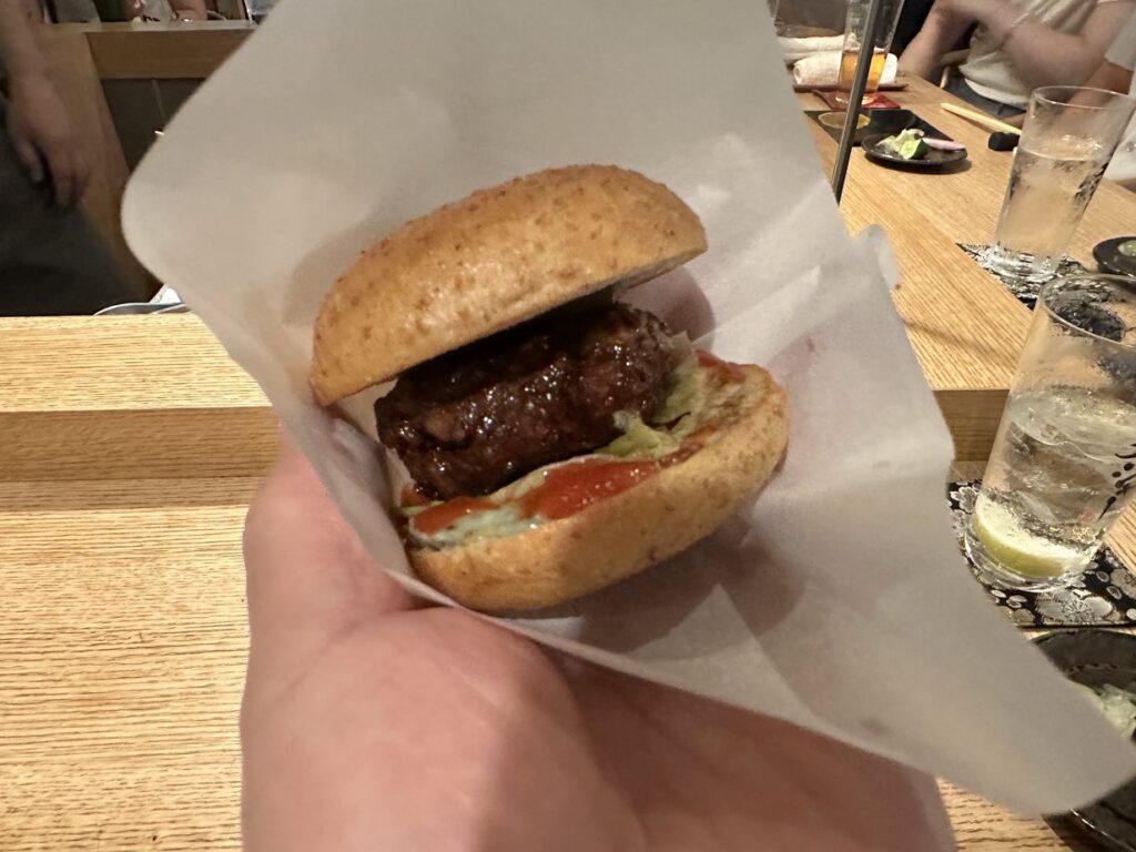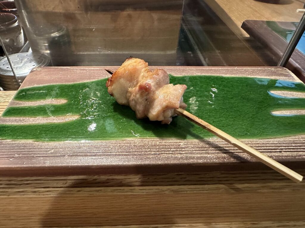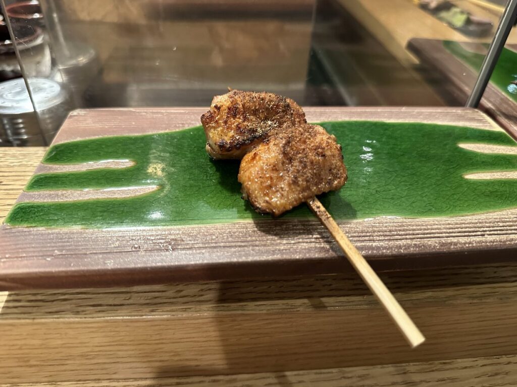 Makuakeの予約。坂学会の飲み友の一人と、錦糸町の焼鳥屋へ。錦糸町とは思えない、小さいながらも、焼鳥屋ならぬ小綺麗なお店です。小さい店内は、コの字のカウンターに9席と、テーブル1卓の4席です。我々は、唯一のおじさん二人組なので、角を挟んでカウンターに着席を指示されたのでした。確かに後から来た客は、3組とも若いカップルで、これも焼鳥屋らしからぬ感じでした。本日は、ジビエバーガー付きの飲み放題付きコース、¥10,000。酷暑の中ですから、乾杯は生ビール。メニューにプレモルとマスタードリームが書かいてあったので、プレモルを頼むと、若い女性の店員が困った顔で、その後男性の店員が登場して、プレモルとマスタードリームは同じものですという説明が・・・。ならば、二段に書かずに、一行で書けばと思った次第です。プレモルは3種あるのだから、わかるようにお願いします。さて、はじめに出てきたのは、玉蜀黍のすり流し、蝦夷鹿たたき山わさび、大間の鮪の前菜でした。温かいすり流しも甘くてよいです。鮪のとろは筋が気になりました。面白いのは、自ら刷毛で醤油を塗っていただく趣向です。たたきは、山わさびを忘れたのかと思うくらい利いていません。さて、メインの焼鳥は、塩が多く、鶏肉の旨味を引き出す焼きは上手でした。焼きながら焦げはさみで切り取って成形しています。笹身と唐墨の磯辺焼きが一番でしたか。野菜串、特に旬のズッキーニが旨かったです。茄子は味がちょい足らないようで。飲み放題ですが、後半は、檸檬サワーをいただきました。どこぞと違って、焼鳥には、ガブガブ飲める酒がいいですね。食事の、蝦夷鹿のバーガーは、旗が今どきですが、見た目ほどはパンチはなく、普通に旨いものでした。TKGは、卵がメインのようで、そぼろ付けますかと聞かれます。もちろんお願いしました。ないとどういう感じか気になりましたが、薄味のそぼろも、卵を打ち消していないので、やっぱりそぼろ付きが正解かと思います。鶏スープは、すっきりとしていて鶏の香りがあり、定番ながらよかったです。シャーベットで口直しで終了。一万円なら、満足のコースかと、納得させられる仕立てでした。まあ、もう一度行ってもよいお店です。
