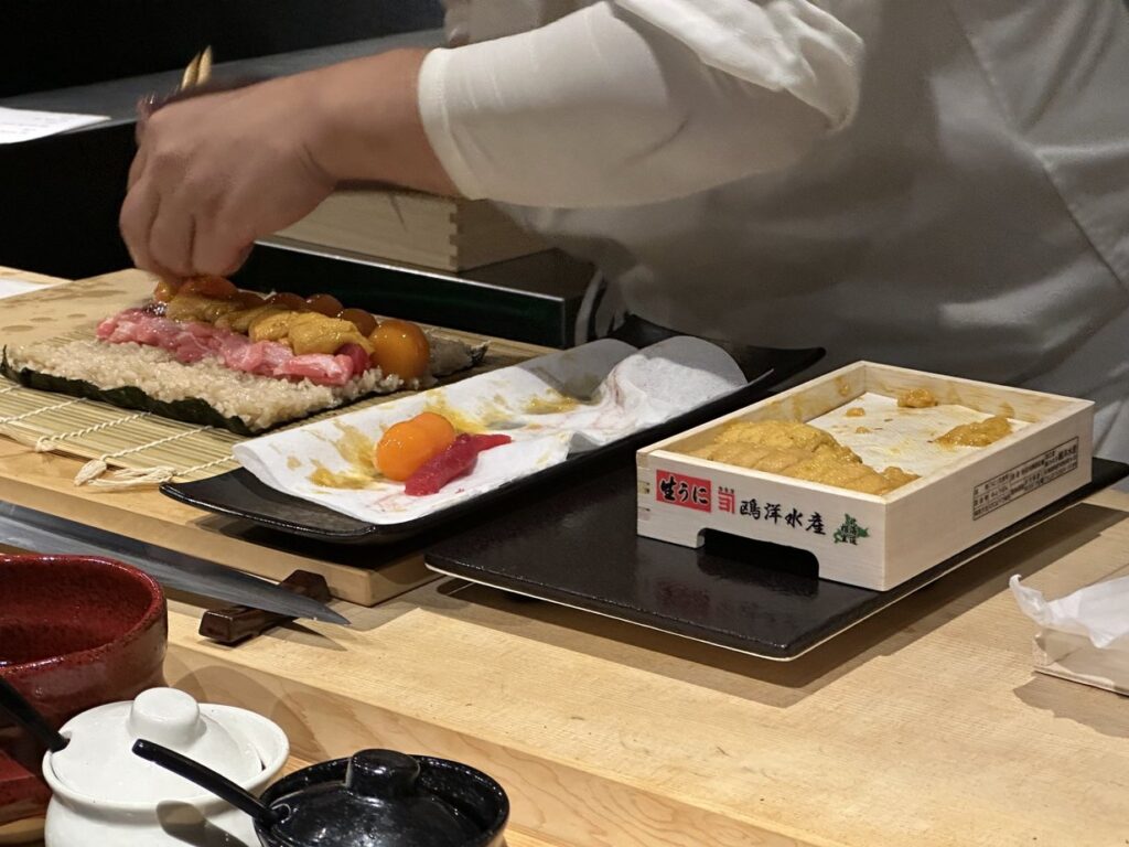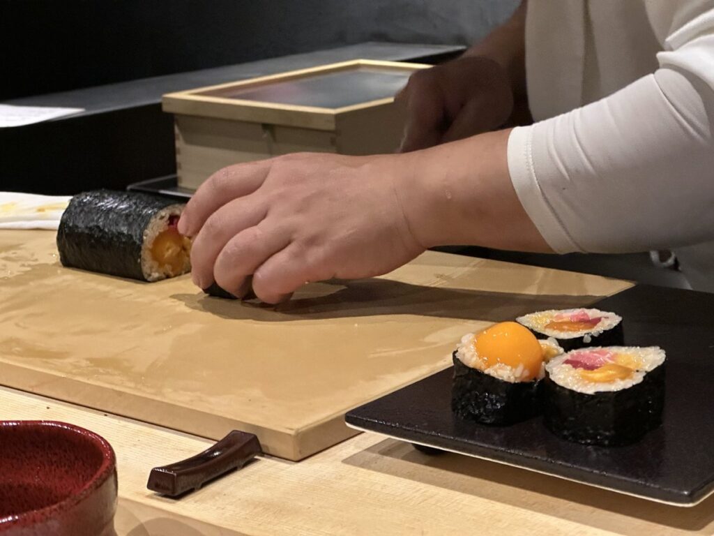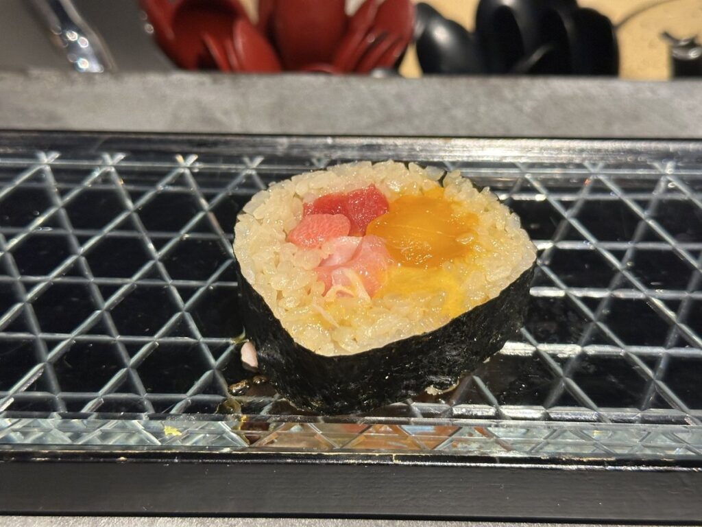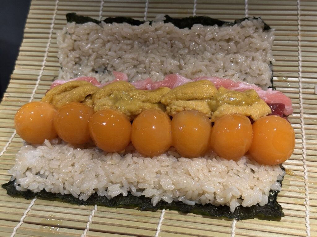 Makuakeの予約。今回は、久し振りに、多摩高の同級生との鮨屋飲みでの訪問。「鮨よしかわ 勝 銀座」という銀座の鮨屋です。ここは、鮨よしかわグループが銀座に二店出店したうちの一店舗です。店内は、黒を基調に落ちついた内装で、席もゆったりしています。いただいたのは、オールインクルーシブコース¥15,000です。銀座らしく、カウンターでの調理パフォーマンスが徹底していて、味わう前に、視覚から訴えてくる演出がすごいです。メニューも工夫されてはいますが、定番のネタが多く、安心していただけました。獺祭スパーリング等飲み物も充実していて、たいへん満足のいくコースでした。名物は、ドラゴン巻きで、これは「よしかわ特製太巻き」のことだそうです。具がはみ出た、端っこが当たりなのですが、誰がそこをもらえるかは、公平にジャンケンで決めるのも面白かったです。私は、外れでしたが・・・。握りや、つまみの数は多くないのですが、手巻きや海鮮丼などもあって、お腹は十分に満たされました。おまかせという鮨伝統のコースに、飲み物を付けて、おまけに見せる工夫も加えて、完成されたコースとなっていました。気の置けない友人と、くだらないおしゃべりをしながら、旨いもの、美味しい酒を堪能することができ、幸せな時間を過ごすことができました。それをリーズナブルにしてもらえた、Makuakeに感謝です。
